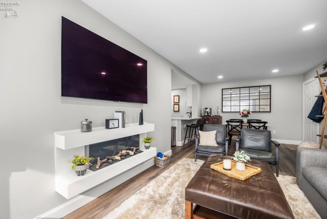 WOW! A Total Transformation Straight Out of a Magazine. Experience waterfront living at its finest with stunning lake and river views, 35' deeded dock, and access to resort-style amenities including a pool, sauna, and clubhouse. Whether you're seeking a full-time residence, weekend escape, or weekly rental investment, this one checks every box. Step inside to a completely updated interior featuring an open-concept layout that seamlessly connects the living and dining areas to a gourmet kitchen with quartz countertops, stainless steel appliances, and new luxury vinyl plank flooring throughout. Thoughtful upgrades include new interior doors, baseboards, and custom millwork, delivering a clean, high-end finish. The primary suite is a true retreat with dual patio doors leading to a private deck with water views, plus a walk-in closet with built-ins. The spa-like bathroom showcases a beautifully tiled walk-in shower. A second bedroom also with water views and custom closet offers the perfect space for guests or family. Additional features include a full-size washer and dryer, plus ample storage. Located within walking distance to the beach, downtown Port Clinton, the Jet Express, restaurants, and night-life this property also sits in the desirable MORA district, allowing for short-term rental potential. Don't wait opportunities like this don't come around often. Seek the opportunity of Vacationland living today!